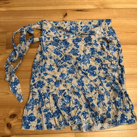 Blå bomstrete sommerskjørt med knyting fra Vero Moda. Ikkje brukt. Nypris 350.