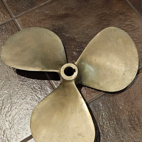 Ny trebladet propell, Federal Thru-pitch, 26 LH 22. for 55 mm aksel, 12, 7 mm kilespor. Kile følger med.