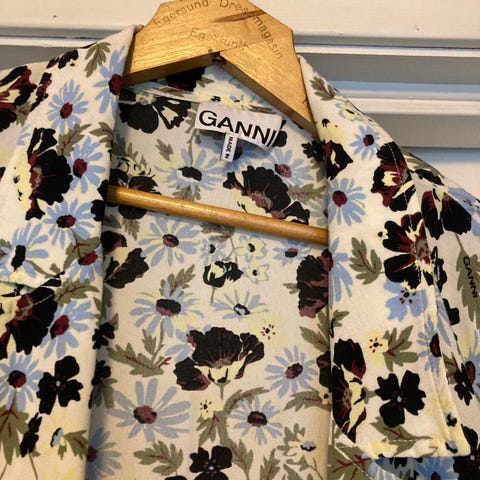 MSCH skjorte i str M/L. Nydelig blomstermønster i en klar fin blåfarge