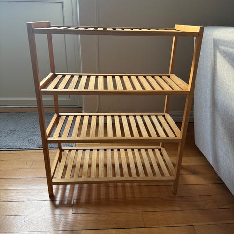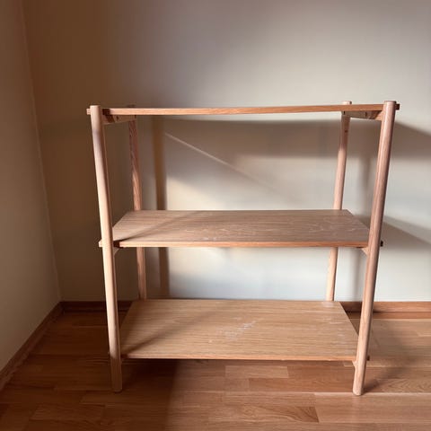 Høyde må sjekkes, men ca 120 cm, litt skrått design.