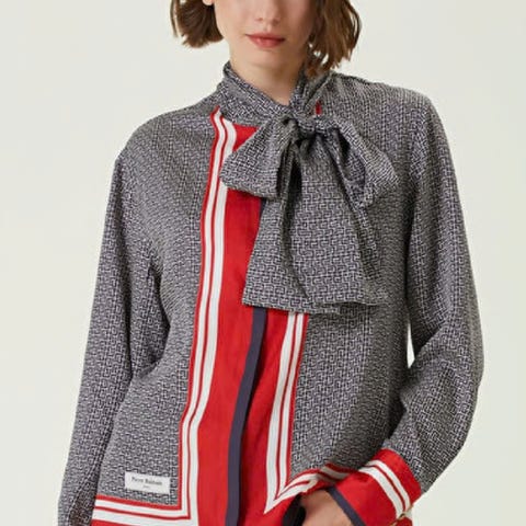 Kjempe fin skjorte / bluse fra Balmain med sløyfe med fine detaljer selges!fikk i gave str 44 Italiensk tilsvarer STR - L-40 sjelden ny pris 11.000 kr Nesten utsolgt overalt Ingen pruting .