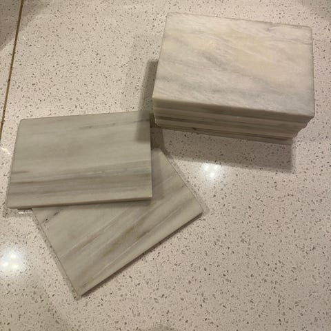 Pent og lite brukte glassbrikker i marmor (4stk). Veldig solide og stødige brikker. Kan sendes med posten :)