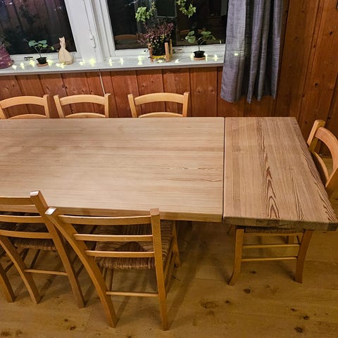 Selges med to lemmer til bordet på 50 hver, så bordet kan bli 310 langt ☺️