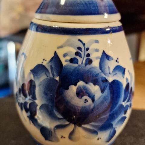 Hel og fin sukker skål med lokk. Den er hel og fin. Kan sendes Den er ca 13 cm høy og 11 cm i diameter
