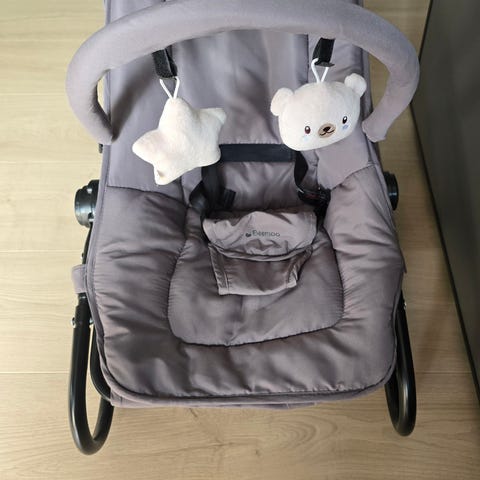 Vippestol med musikk, naturlyder og vibrasjon selges. Kan justeres i tre ulike sittehøyder. Ingen synlige merker eller slitasje.