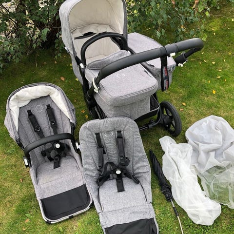 Tvillingvogn med 2 stk bag og 2 stk sportsvogn.