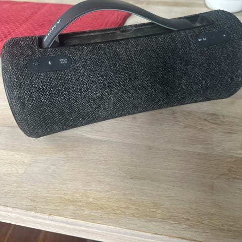 Selger en Sony høytaller med Bluetooth, og også mulighet til å koble mobilen rett i adapteren så du får ladet den samtidig.