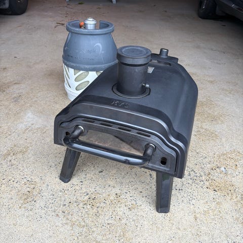 Carrybag til å bære og beskytte den i. Liten og kjekk pizzaovn som kan dras med på hyttetur/telttur. Steker pizza på 90 sek. Spade til å ha pizza på følger også med.