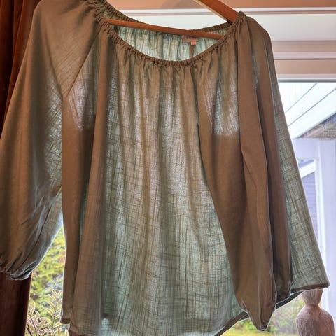 Lyseblå bluse med knyting bak og volang armer. Kun brukt et par ganger.