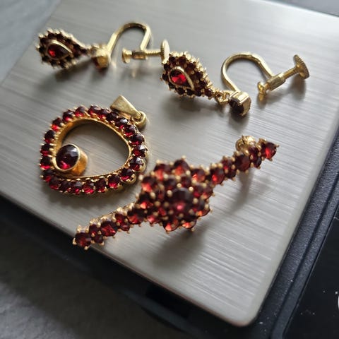 Vintage sett i 18k gull og amatyst/ viktoriansk stil
