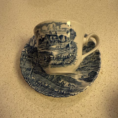 4 sett kaffe eller te kopp i serien Jacobean fra Ridgway ironstone Staffordshire England