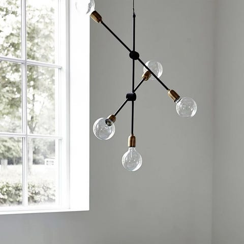 Selger Molecular Taklampe 78 cm, Messing/Sort. taklampen har justerbare armer. 5 lyspærer følger med, kan dimmes. Ingen skader eller bruksmerker.