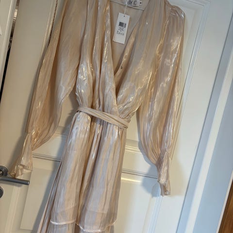 Vakkre damekjole , størrelse M, knyting under brystene. Bomull med lin.
