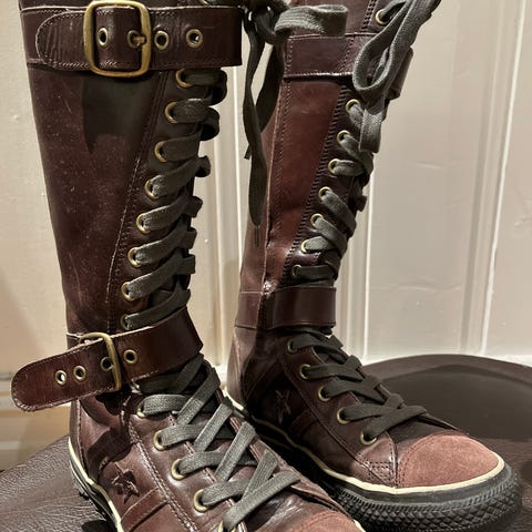 Converse Breakpoint i størrelse 39 selges. Beige farge med rosa nyanser som passer med alt og perfekt for sommeren. Semsket skinn. Ny pris er circa 1400 nok. Brukt bare en gang, som nye.
