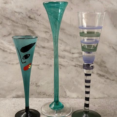 Små drammeglass. Funkis, trekantglass. Svart stett 13 glass. 50 kr stk. 650 kroner for alle.
