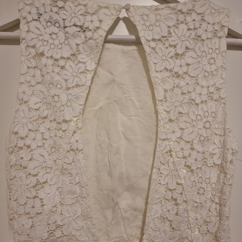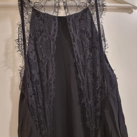 Nydelig fotsi kjole med åpen rygg og blondedetaljer. God som ny, kun brukt én gang. Ferskenfarget str S.