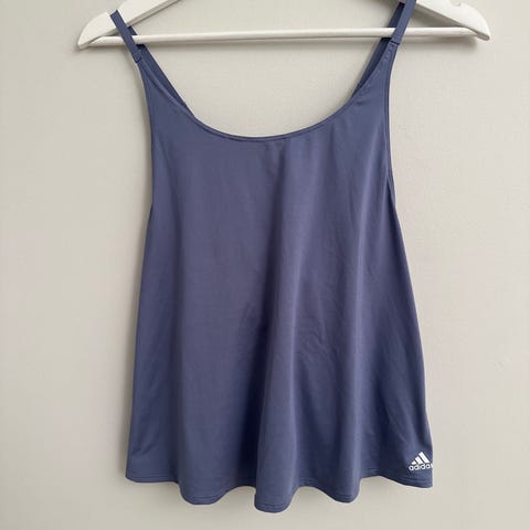 Ny kul sort treningstopp fra Adidas. Bryterrygg og blankt stoff med stropper i stretch.