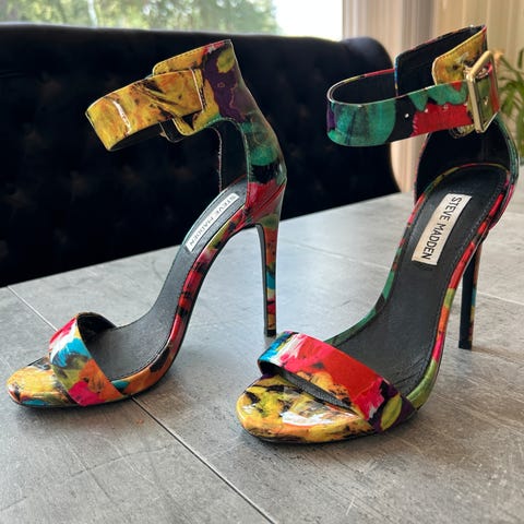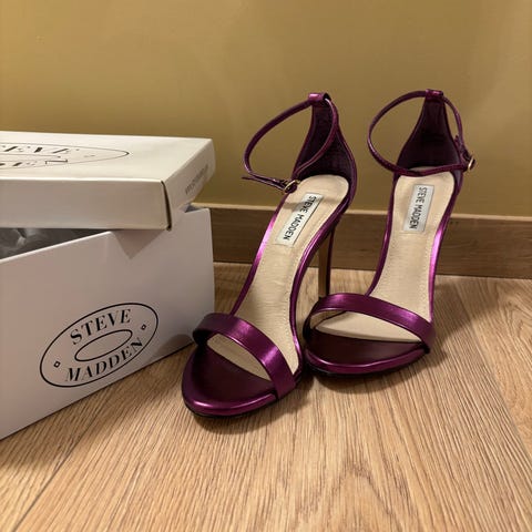 Steve Madden hæler i størrelse 37, beige farge. Skoene har høy hæl og er designet for damebruk.