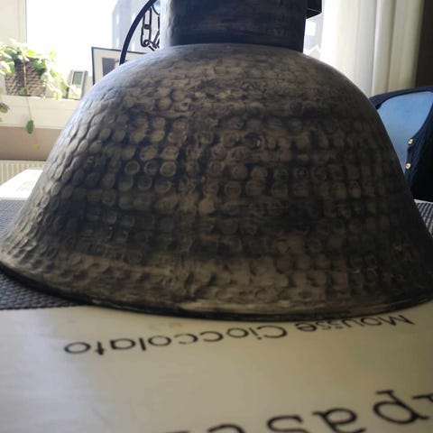 Tøff taklampe, industrielt preg. Høyde: 25 cm, Diameter: 40 cm