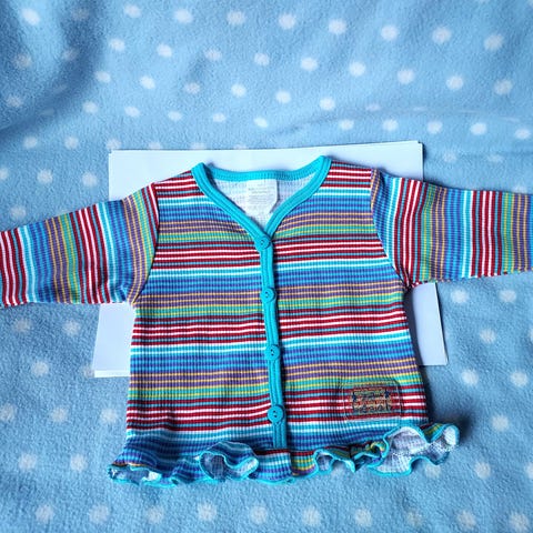 Vil tro dette er fra det glade 80 tallet. Synes det har sjarme med sløyfene på jakka. 🙂