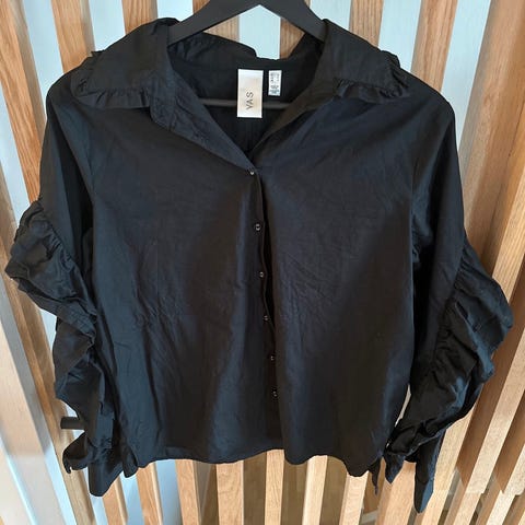 Tatt av lappen men aldri blitt brukt. Kul skjorte med rysjer på ermene og ryggen.