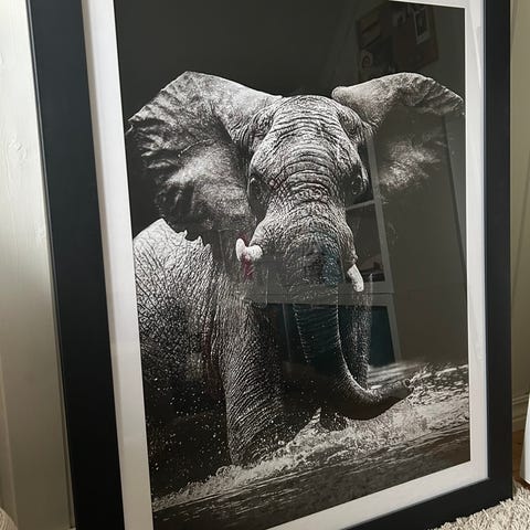 Kost elefantbilde med ramme selges.
