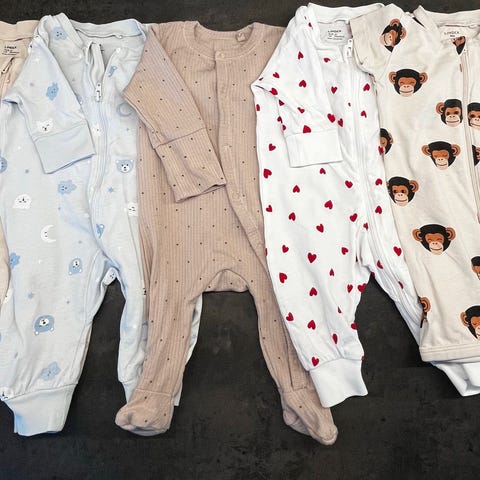 Selger en fin rosa nattpose, ca 81 cm lang. På lappen står det "CaMa Baby".