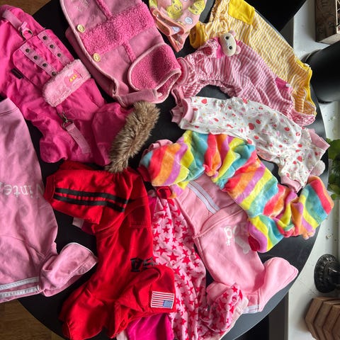 Regndekken, t-skjorter, tispetruser, leggvarmere, halsbånd og kobbel i nylon som kan justeres i 3 forskjellige lengder.