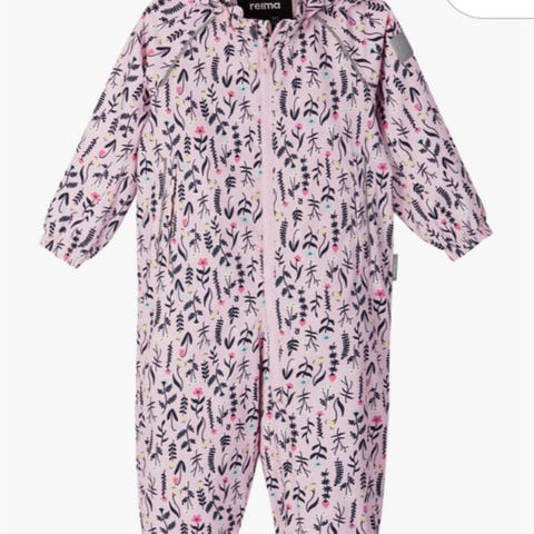 Første rosa og blå dress pent brukt, siste lyserosa har merke etter W for Wheat, mangler hette og knapp til fotstrikk. Alle mangler fotstrikker.