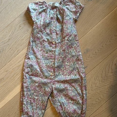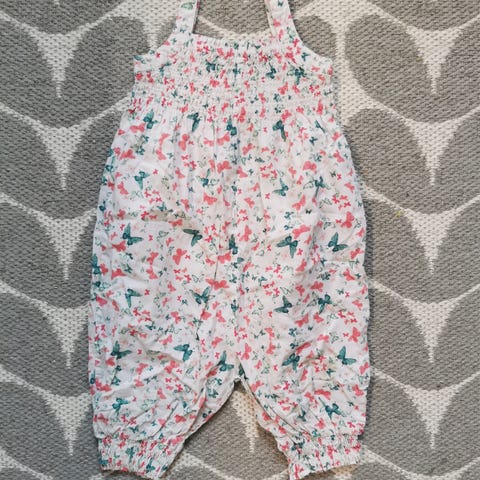 Sommerlig og lett jumpsuit fra Name It, med nydelig sommerfuglmønster. Vaffelsøm over brystet og nederst på leggene. 100 % bomull. Plagget kan brukes med en topp eller bluse under, eller kun som den er.