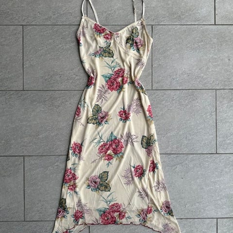 Selger blomstrete kjole fra Kookai. Helt nydelig i fasongen, men nærmere str small / 36 enn det lappen sier (38).