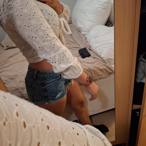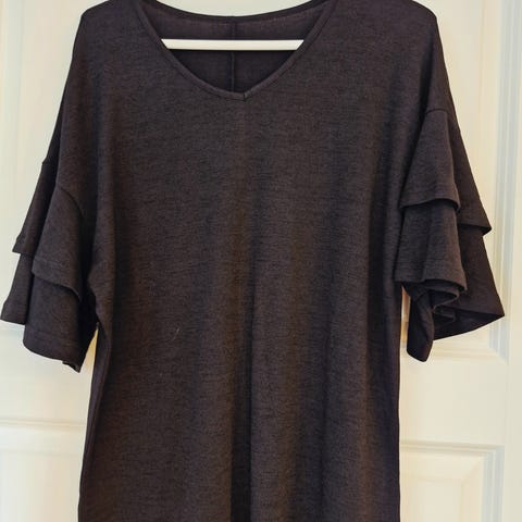 Kan puttes oppi bukse/skjørt eller bare henge rett ned. Kan også knytes ved armene.