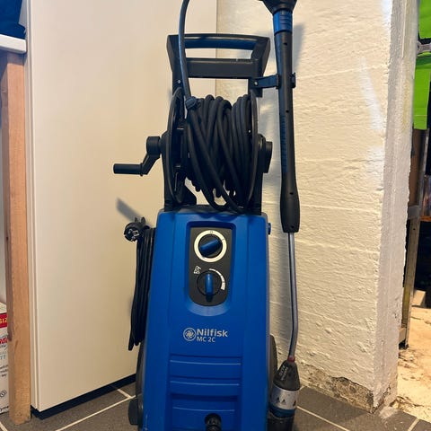 Selger en Nilfisk e140.3 som starter, men lekker i innvendig kobling. Mangler lansen i enden av håndtaket på høytrykkspyleren.
