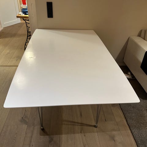 Spisebord ovalt hvitt med metallben