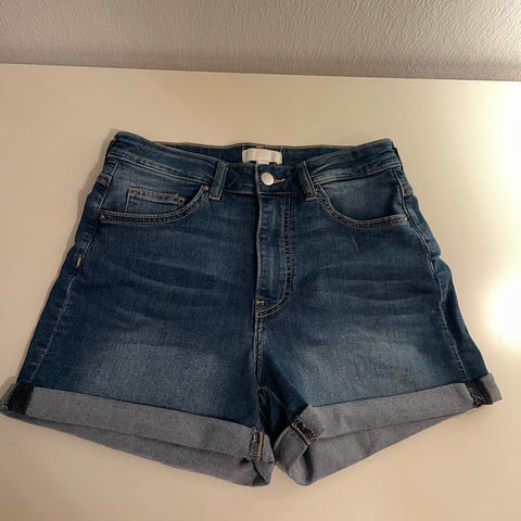 Pent brukt kort denim shorts. Høy på livet. Str 36 med stretch.