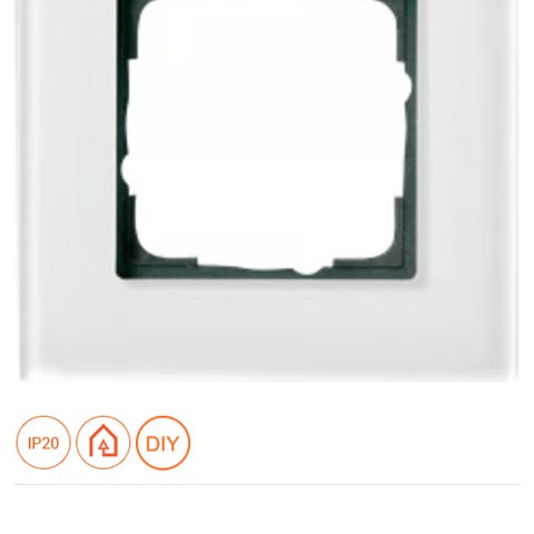 Gira E2 Ramme i glass, farge hvit. Denne rammen er laget for å passe til Gira E2-serien. Den er laget av høykvalitets glassmateriale og kommer i en elegant hvit farge. Rammen er designet for å gi et stilrent utseende til brytere og stikkontakter i hjemmet. Produsert i Tyskland. 300 pr stk.