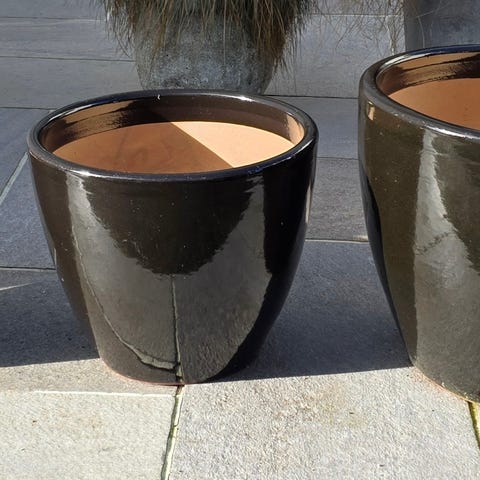 sett blomsterpotter keramikk brun