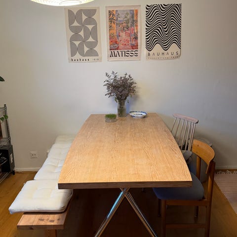 Ny pris ca 13 000, selges for 2000kr. Noen bruksmerker på 2 hjørner, ellers ingenting. Se bilder. Str 200cm langt, 100cm bredt. Innleggsplate kan settes på begge yttersider, følger ikke med.