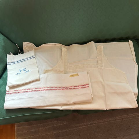 Overlaken, pyntelaken. Tekstil. Stoff.