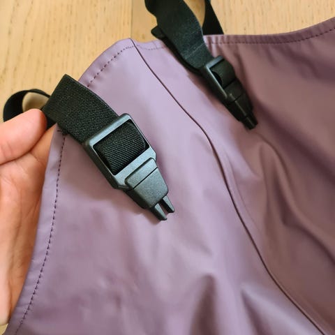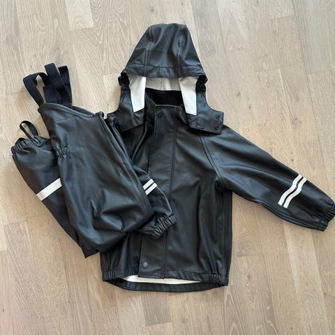 Pent brukt regnbukse til barn med praktiske, justerbare seler i str. 98/104.