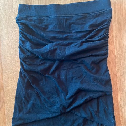 Svart inntilsittende skjørt med drapering i sidene.