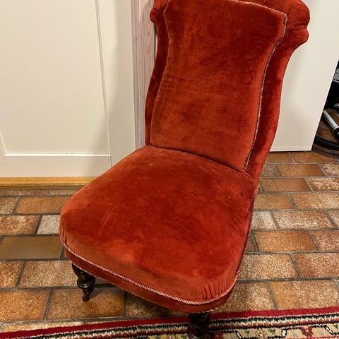 Ekte engelsk stol fra viktoriatiden (andre halvdel av 1800-tallet) selges.