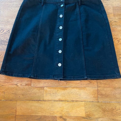 Mørk blått Denim Studio miniskjørt i stretch denim selges. Brukt noen få ganger. Str 25 tommer.
