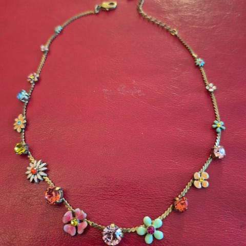 Dette unike halskjedet er laget med perler og metall i forskjellige farger og former. Det har et elegant og vintage preg, og er perfekt for å piffe opp ethvert antrekk. Halskjeden er lett og behagelig å ha på seg, og den er sikker på å bli et favorittstykke.