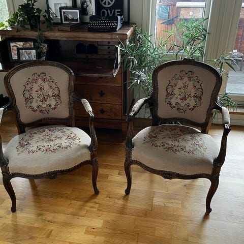 Flott gammel / retro stol med blomster-mønster.