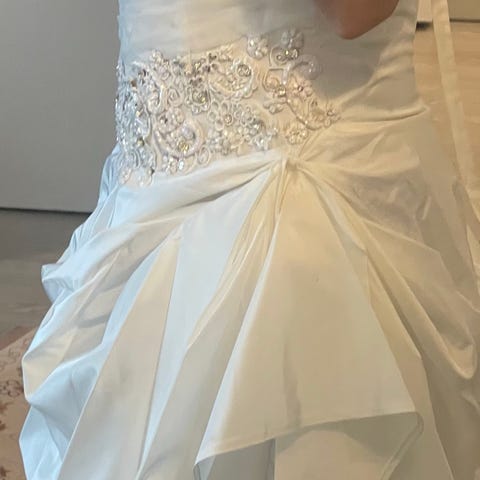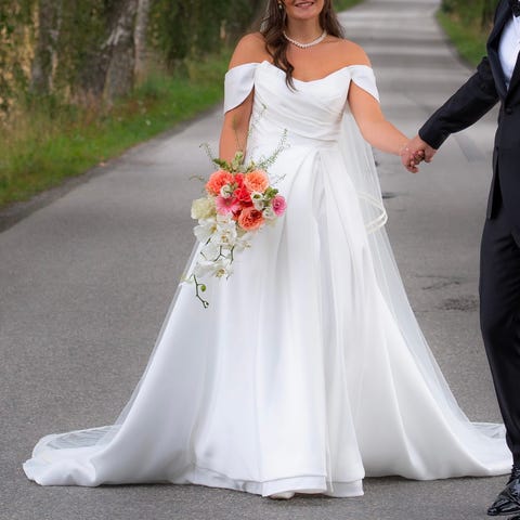 Ubrukt kjole selges. Modellen er 168 cm og bruker str 36/38. Har ikke sko på på bildene. Snøring i ryggen gjør at den nok kan passe både XS og opp til M str. Kan prøves på i Trondheim. Kan sendes mot frakt.