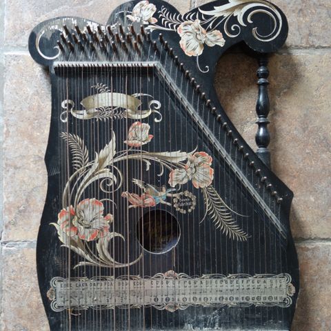 Harpeleik / Zitter, produsert i Tyskland. Mangler en streng. Stemmenøkkel følger med.