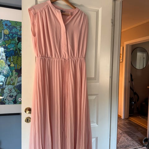 Ferskenfarget kjole med underskjørt fra pep, aldri brukt bare vasket og hengt i skapet.