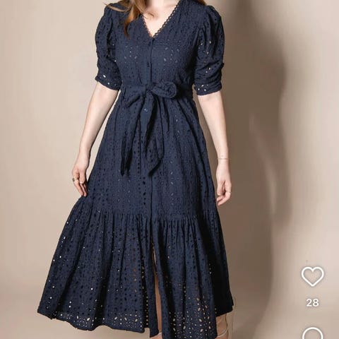 Kjolen har omslagseffekt, v-skjæring, lange ballongermer med elastisk mansjett, strikk og avtagbart belte i midjen. Perfekt kjole for sesongens festligheter.