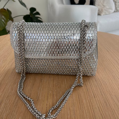 Denne unike clutchvesken er laget av kobber gull sequin og har en søt sløyfe foran. Den er perfekt for en festlig kveld eller et annet spesielt arrangement. Vesken er romslig nok til å romme dine viktigste eiendeler, som telefon, lommebok og nøkler. Lomme med glidelås på innsiden av veske. Den er lett å bære med seg og har et elegant og sofistikert preg.